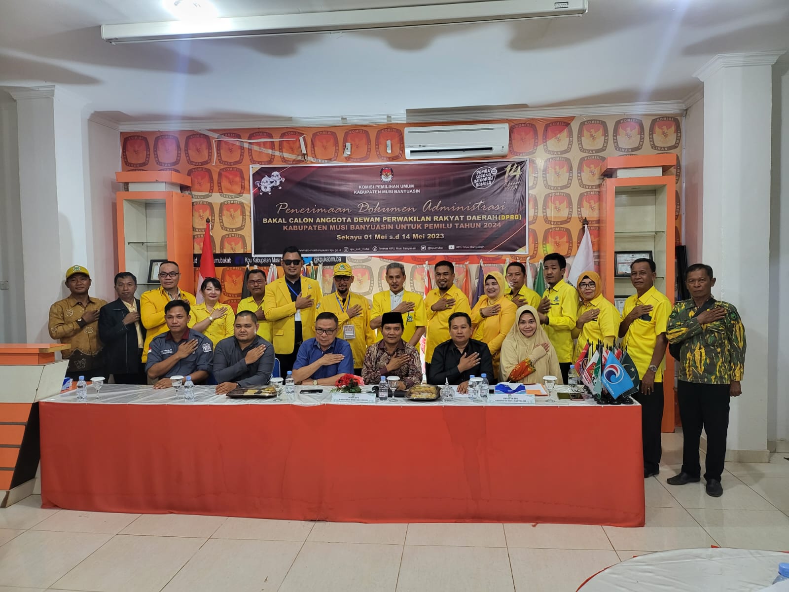 Ketua KPU Musi Banyuasin Yufizer ST mengatakan, setelah meneliti seluruh berkas yang diajukan Partai Golkar, pihaknya menyatakan telah lengkap dan diterima. Selanjutnya akan dilakukan penelitian dan Verifikasi lebih lanjut dokumen tersebut. Pendaftaran bacaleg sendiri dibuka KPU mulai tanggal 1 Mei dan akan ditutup pada Minggu (14/5/2023) pukul 23.59WIB (SNA)