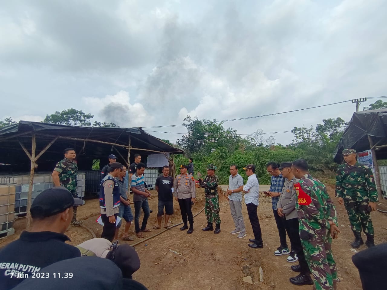 Kedatangan tim gabungan yang terdiri dari Polri, TNI, Pol PP, Pemerintah Kecamatan Sanga Desa dan Pemerintah desa kali ini memberikan sosialisasi dan edukasi terhadap pelaju illegal Drilling dan Refinery.