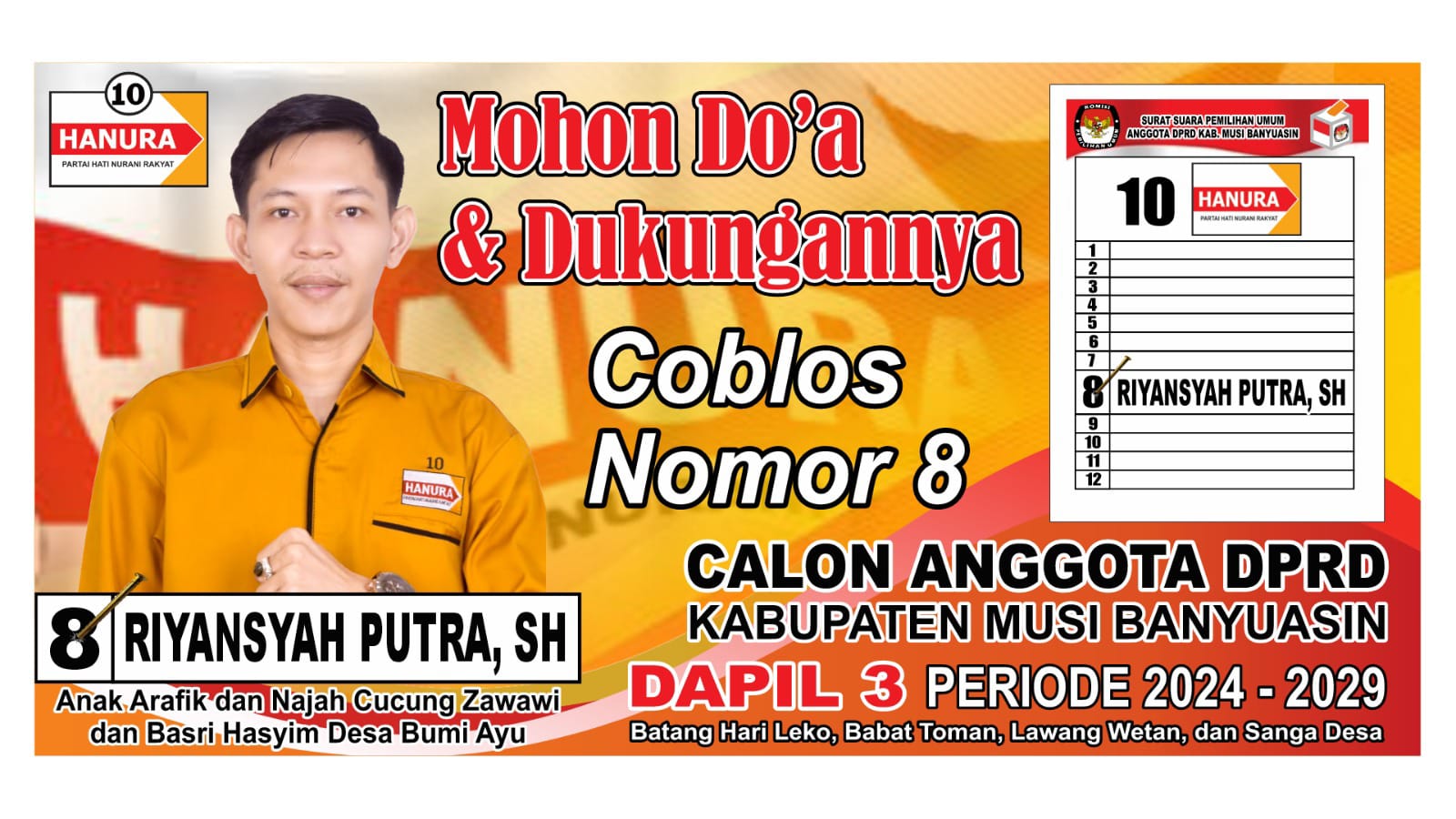 “Suport Sistem dalam menghadapi Pemilu Tahun 2024 ini adalah Perkuat Doa, dan Restu dari Keluarga agar kita diberikan proses yang lancar,” kata Riyan, Rabu (24/1/2024).