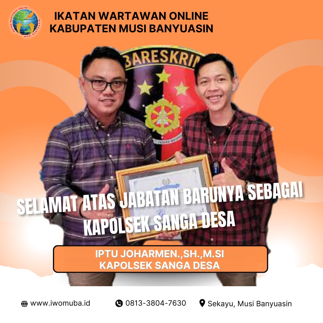 Ketua IWO Muba Riyansyah Putra SH CMSP mengucapkan selamat atas jabatan yang akan diserahterimakan kepada IPTU Joharmen SH MSi yang merupakan Perwira berpengalaman dilingkungan Polres Musi Banyuasin.