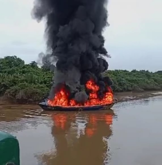 MUBA,BENUAMERDEKA.ID – Salah satu Kapal Tongkang yang Diduga bermuatan Minyak hasil Ilegal Drilling terbakar di wilayah perairan Sungai Parung Kecamatan Sungai Lilin, Selasa (03/12/2024) Pukul 08.15 Wib.